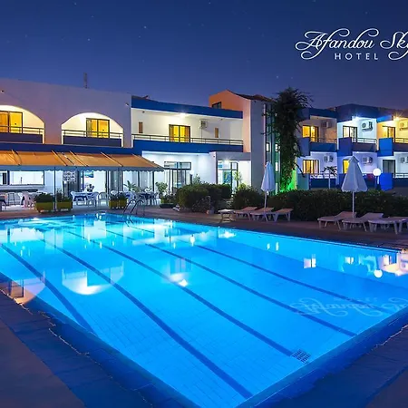 Bu otel restoranda lezzetli bir kahvaltıyı sunar. Afandou Sky Hotel otelinden sadece 450 metre uzaklıkta bulunan To Kanati, Michalis Restaurant Cafe Bar, Yunan yemekleri sunmaktadır.